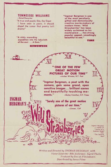 Traveling to accept an honorary degree, Professor Isak Borg – masterfully played by veteran director Victor Sjöström – is forced to face his past, come to terms with his faults, and make peace with the inevitability of his approaching death. Through flashbacks and fantasies, dreams and nightmares, Wild Strawberries dramatizes one man’s remarkable voyage of self-discovery. This richly humane masterpiece, full of iconic imagery, is a treasure from the golden age of art-house cinema and one of the films that catapulted Ingmar Bergman to international acclaim. (Janus Films)